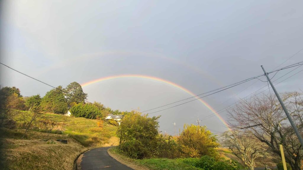 恵の雨のあと、大きな虹がはれまに前に現れました🌈✨✨
