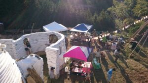 2014年秋 大ドーム建設開始、同時に大勢が食事するための竹キッチンや竹休憩所を作成