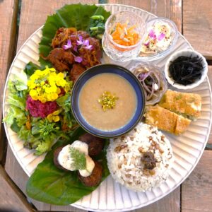 はれまにTake 子供の頃から社会や自然環境のことに関心が強く、 どうすれば地球家族が平和で共生的な 生き方ができるかを考え探求してきました。 学歴やキャリアに背を向けて 社会運動や自然保護活動などに関わりながら、 必要なことは独学で習得し実践するという 反骨的な傾向は、結果として 沢山のスキルが身についたものの、 特化しなかったため器用貧乏な生き方になってしまいました 15年程前、大阪で写真関係の仕事をしていたとき、 ある映画で写真が使われることがあり、 関係者が岡山在住であったことから 岡山にご縁が生まれ、かねてから田舎に 拠点を移したいと思っていた望みが実現。 この地で作ったアースドームは 建築未経験からのチャレンジでしたが、 いつしかライフワークのようなものになっていきました そしてそれはお金や常識に捉われない 本当に豊かで共生的な暮らしとはどういうものか、 それを実験し実践する場にもなっていきました。 中でも農や食、音楽や地域文化は 取り組み続けている主な分野です。 未だトライアンドエラーの繰り返しで途上にありますが、 志は変わらず歩み続けています。 はれまに茶屋のメインシェフ。 |